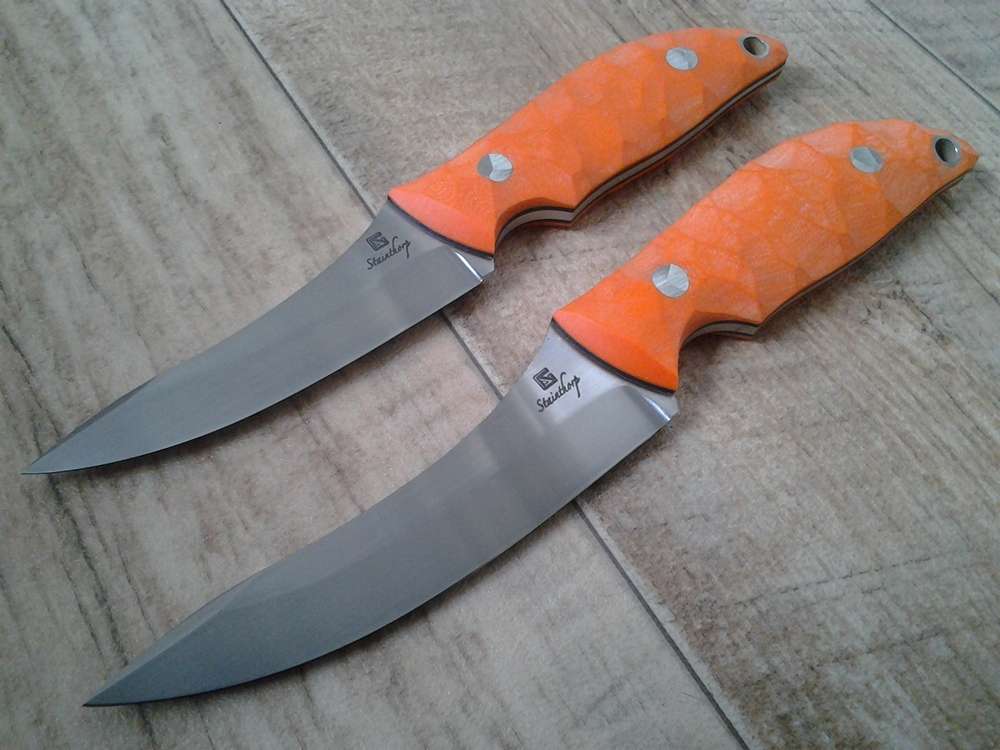 The handle is available in many materials, but I recommend G10 or micarta with a sculpted finish which adds a considerable amount of grip for when things get mucky and slick! Due to several requests, a larger version is also available for the bigger species of deer, and in fact the dimentions can be customised within reason to suit your needs.