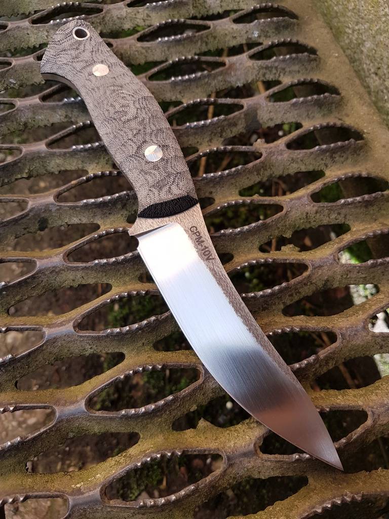 A full tang design with a flat sabre grind for a combination of strength and cutting ability. As standard it has a blade of 4.75" and is 9.25" overall, with a handle of micarta or G10. The grip has a distinct palm swell and 'fishtail' at the butt end to maximise grip and reduce hot-spots whilst making power cuts. If you are looking for one knife to cover as many bases as possible, this may well be the blade for you.